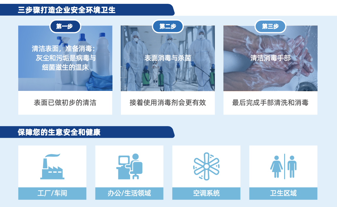 整个三步骤过程不是一次性的,你必须定期地不断地清洗、消毒和杀菌才能达到最好的效果。这些优先区域应定期消毒,以使该区域尽可能减少细菌和病毒的传播,减少微生物的产生。